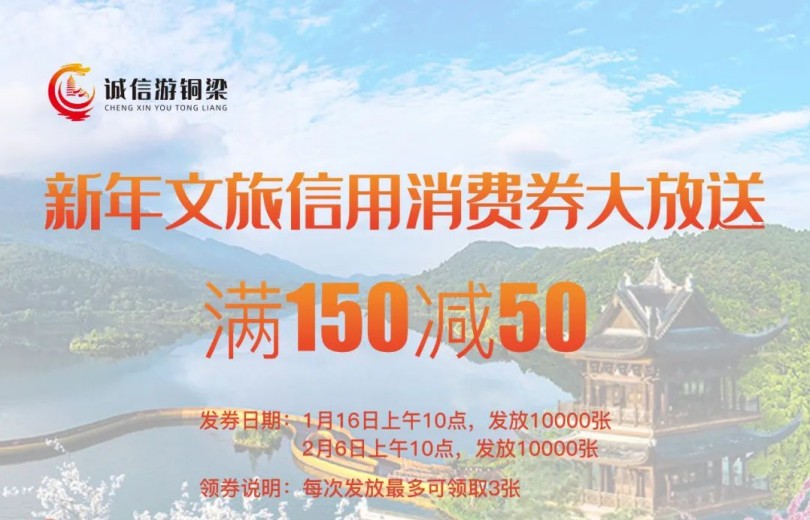 滿(mǎn)150減50!10000張銅梁文旅信用消費(fèi)券再度來(lái)襲