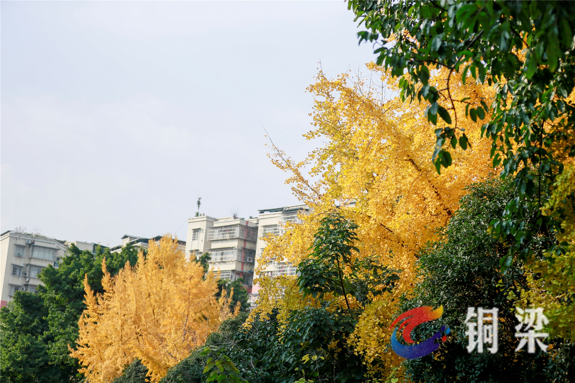 隨著氣溫日漸走低,近來,銅梁城區的銀杏樹悄然換上“金裝”。河畔旁、公園里,銀杏樹靜靜地舒展著,抬頭低頭間,滿眼皆是“金色浪漫”。微