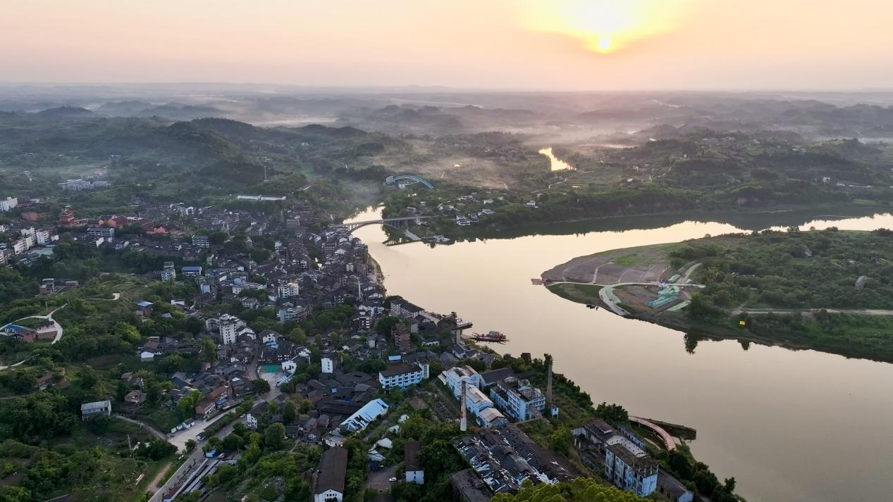 8月19日,涪江邊的安居古城沐浴在落日余暉中。錯落有致的房屋、蜿蜒的街道,還有美麗的安居國家濕地公園,呈現(xiàn)出一幅寧靜而美好的鄉(xiāng)村畫卷。